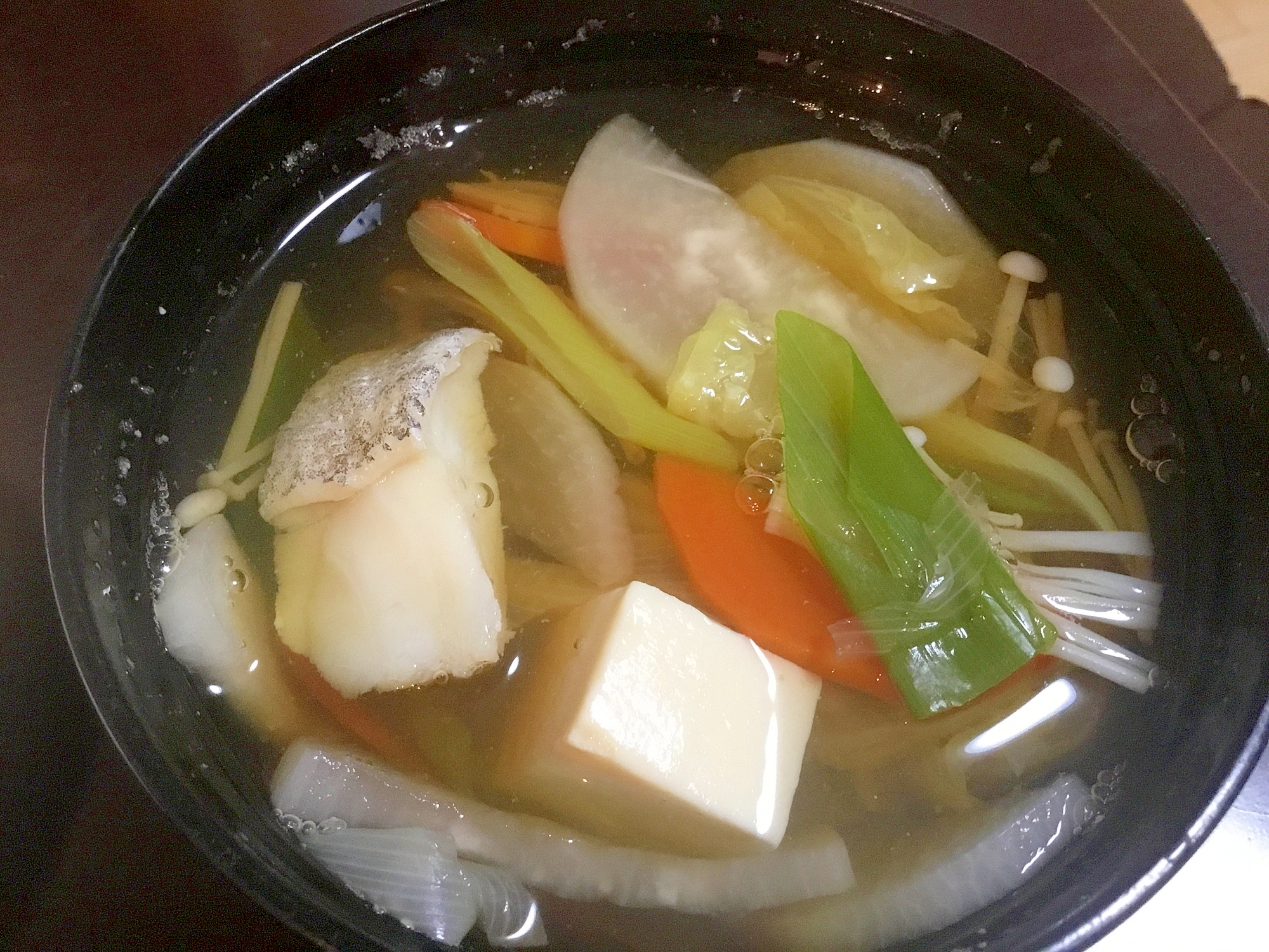 たら切り身に軽く塩 (分量外)を振って5分ほど置き、水気をキッチンペーパーで拭き取る。 ① たらは一口大に、白菜は3cm角のざく切りにする ② 鍋にだし汁を沸かし、①を加えて10分ほど煮込み、白菜がしんなりとしたら「液みそ 白みそ」を溶き加えるたら汁(じゃっぱ汁) 水、たら切り身、アラ、肝など、にんじん、大根、豆腐、ねぎ、 味噌、 酒、 昆布だし( 地元の味、ご飯に合う。 酒にも合う。 お味噌はお好みで調整。 1番人気のレシピを見 気泡が出たら沸騰前に昆布をあげて下さい。 昆布で出汁をとる じゃっぱ汁を作る 煮えにくい大根と人参から煮ていきます。 この野菜がある程度火が通ったら、次にジャガイモを入れる場合はこのタイミングで入れて下さい。